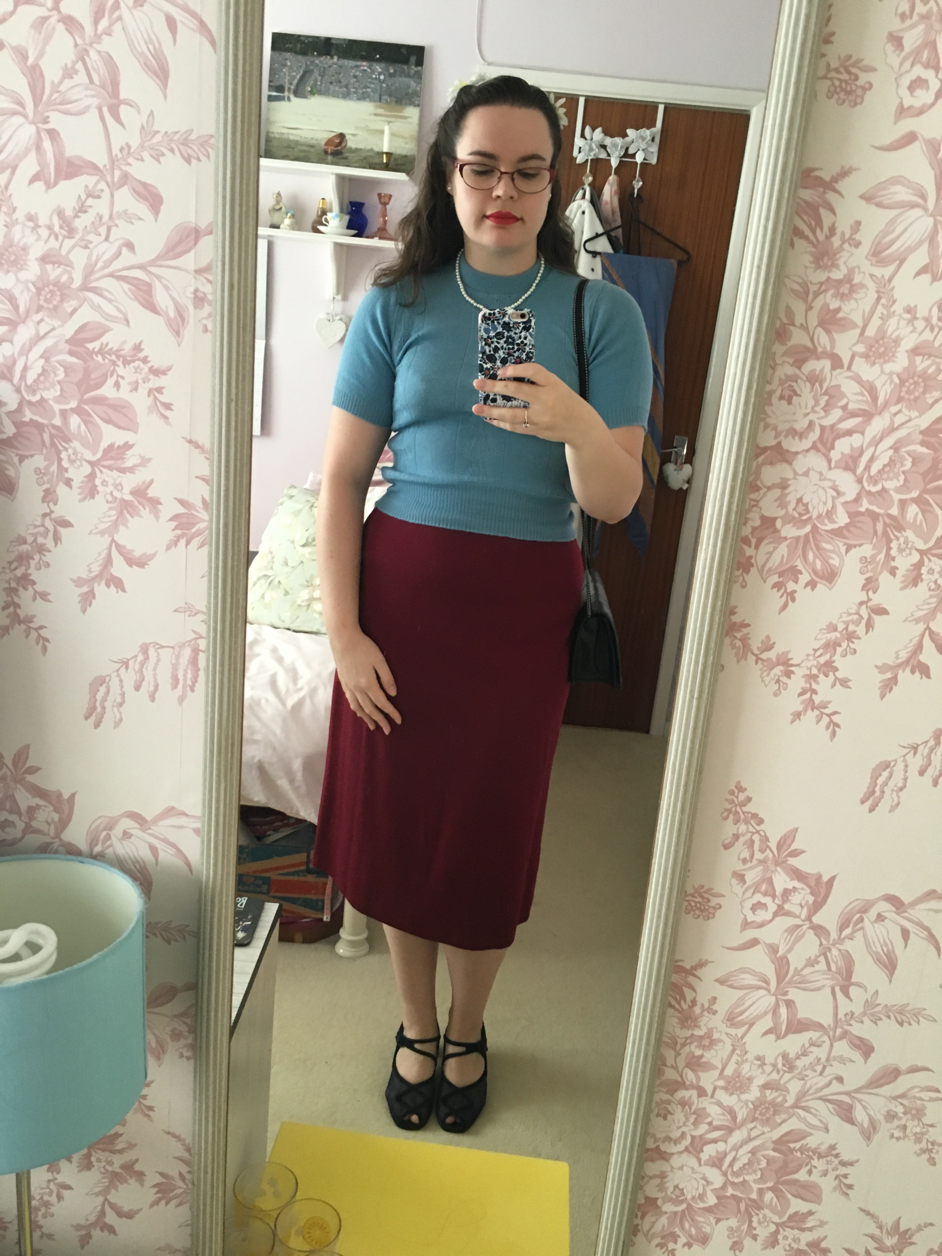 When wearing true vintage, when an items might be 70 or even 80 years old, I try considering what activities I plan on doing that day and if I feel wearing an item of clothing I deem more delicate would be appropriate. For example if I know I am going to be doing any cleaning at home or gardening (things that might involve bleaching agents or vigorous stretching and kneeling) I will generally wear modern clothes with plenty of stretch to them; or at work, whilst working around museum collections and storage, I will try not to wear fabrics that could easily get snagged. Now I do own vintage pinafores/wrap aprons that were designed to be worn whilst cleaning, but again I would like to preserve these items for as long as possible, so I tend to only use these whilst doing things such as hand washing and dusting.